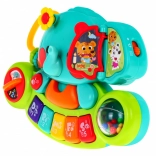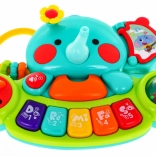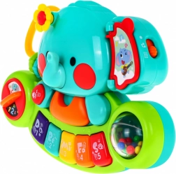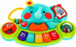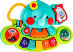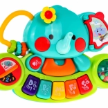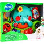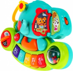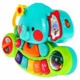 Hračka ponúka dva režimy – s notičkou na hranie tónov (D-Re-Mi-Fa-S) a s knihou na objavovanie čísel (1–5 v angličtine), zvukov zvieratiek (opička, vtáčik, mačička, káčička, psík) a povzbudenia k hre. Sloník má podsvietené líčka, otáčací chobot so zvukmi, otáčacie koliesko a ťahaciu kytičku s veselými efektmi. Ak sa chvíľu nepoužíva, pripomenie sa a následne prejde do režimu spánku.