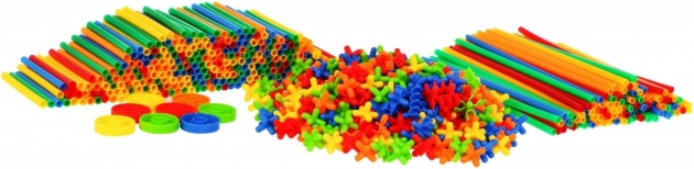 Veľká stavebnica – stavebné slamky je hračka pre deti od 3 rokov. Sada obsahuje až 800 dielikov, z ktorých môže vaše dieťa postaviť mnoho nádherných stavieb, ako sú veže, vozidlá, mosty, budovy a pod. Tyčinky sa navzájom dokonale spájajú pomocou konektorov. Dodávajú sa v rôznych farbách: zelené, červené, modré, oranžové a žlté. Celá sada je zabalená v plastovej krabici s uškom na prenášanie. Súčasťou sady je aj obrázkový návod s príkladmi stavieb, ktoré možno zostaviť. Hra so slamkami rozvíja fantáziu dieťaťa, učí ho kreatívnemu a logickému mysleniu.