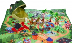 Táto zábavná a vzdelávacia sada poteší všetkých malých paleontológov. Veľká plastová hlava dinosaura slúži ako úložný box s výsuvným držadlom, takže si deti môžu celý svet ľahko vziať kamkoľvek so sebou. Vo vnútri nájdete filcovú hraciu podložku s motívom parku a pestrú kolekciu gumových figúrok dinosaurov, stromov, skál a sopky pre realistické scénky.