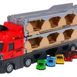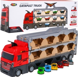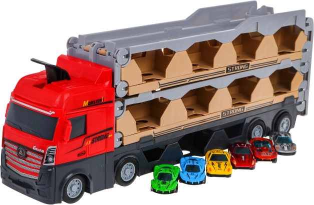 | | Veľký, pevne postavený, trojposchodový nákladný automobil s katapultom pre deti od 3 rokov. Nákladiak má gumové pneumatiky a pohon dvoch kolies. Na hornej strane vozidla je praktické madlo na prenášanie, aby ste mohli kamión vziať všade so sebou. Hračka má 3 poschodia, na ktoré možno uložiť veľké množstvo autíčok (súprava obsahuje 6 autíčok). Po rozložení úrovní vznikne pre autíčka veľká dráha s dĺžkou až 207 cm. Nákladiak má katapult pre vozidlá, stačí umiestniť vozidlo na najnižšiu úroveň a stlačiť páčku umiestnenú na streche nákladiaka. Nákladiak vystrelí vpred a pôjde po rozkladacej dráhe. Hračka nevyžaduje batérie. Funkcie nákladiaka: - Pohodlná rukoväť na prenášanie, - Triedič pre vozidlá, - Katapult pre autá, - Pohon na dve kolesá. |