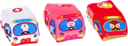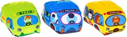 Farebné textilné autíčka s roztomilými vodičmi sú ľahké, hebké a ideálne pre malé rúčky. Podporujú zábavnú a bezpečnú hru bez tvrdých hrán.