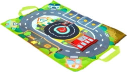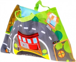 Podložka s cestami, domčekmi a prírodou sa vďaka suchým zipsom zloží do praktickej tašky s uškami. Jednoduché uloženie a prenášanie kamkoľvek.