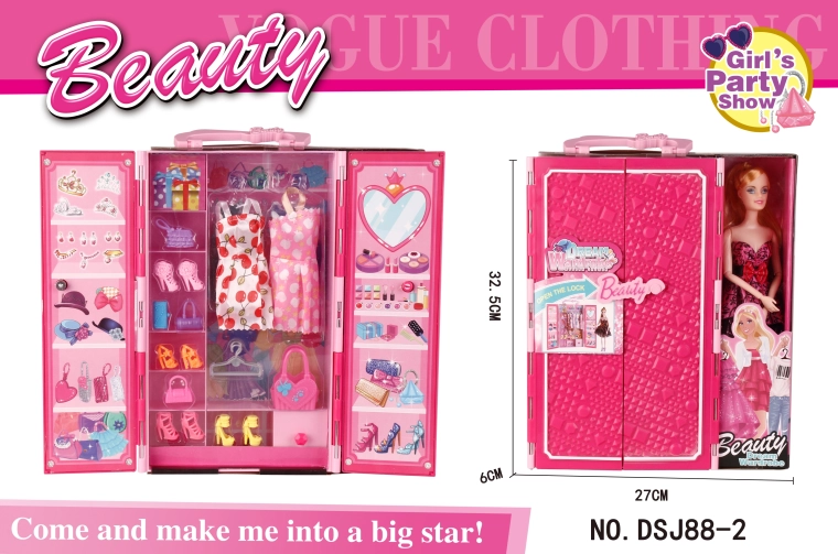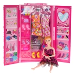 Súčasťou je bábika v spoločenských šatách a bohatá výbava: 2 šaty, 5 kabeliek, 4 páry topánok, 3 vešiaky a box na drobnosti. Šatník možno otvoriť do širšej polohy pre lepší prehľad a štýlové vystavenie oblečkov.