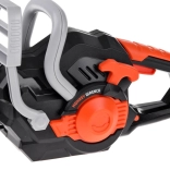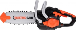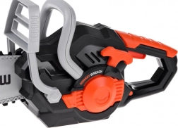 Realistická detská elektrická reťazová píla sa postará o hodiny bezpečnej hry na záhradníkov. Ponúka pohyblivú gumovú reťaz, zvukové efekty ako skutočná píla a v balení nájdete aj ochranné okuliare pre ešte bezpečnejšiu zábavu. Ľahká plastová konštrukcia, jednoduché ovládanie a atraktívne čierno‑sivé prevedenie s oranžovými prvkami poteší každé dieťa.