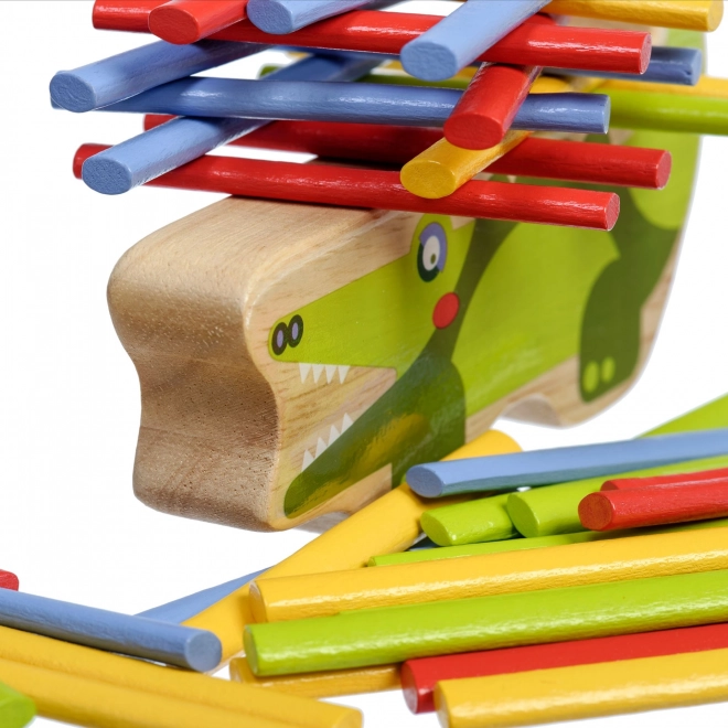 Drevená Balansná Hra Krokodíl je zábavná a kreatívna hra pre deti, ktorá podporuje rozvoj motorických zručností a trpezlivosť. S farebnými tyčinkami a krokodílom ako základňou ponúka hodiny kvalitnej zábavy.