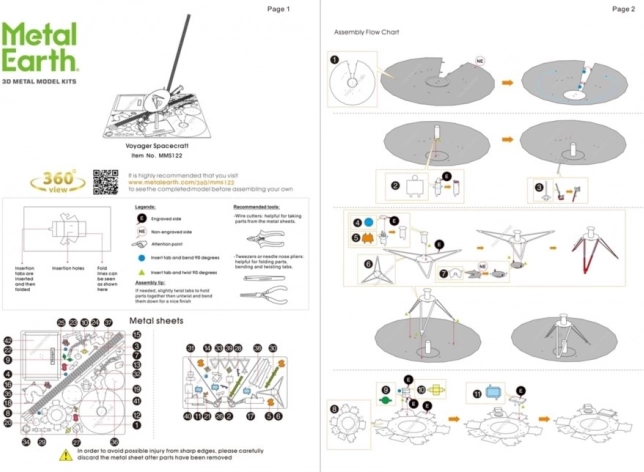 Jednotlivé diely vyberte z kovových plátkov, v prípade potreby použite malé štiepacie nožnice (nie sú súčasťou). Dieliky sa spájajú pomocou zámkov tvorených úchytom (zobáčikom) a otvorom. Zobáčik ohnite pomocou malých tenkých klieští (nie sú súčasťou) a postupne spojte všetky zámky, až vznikne veľmi realistický majstrovský kúsok!