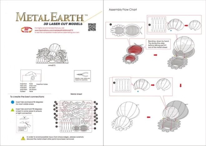 Jednotlivé diely vyberte z kovových plátkov, v prípade potreby použite malé štípacie nožnice (nie sú súčasťou). Dieliky sa spájajú pomocou zámkov tvorených úchytom (zobáčikom) a otvorom. Zobáčik ohnite pomocou malých tenkých klieští (nie sú súčasťou) a postupne spojte všetky zámky, až vznikne veľmi realistický majstrovský kúsok!