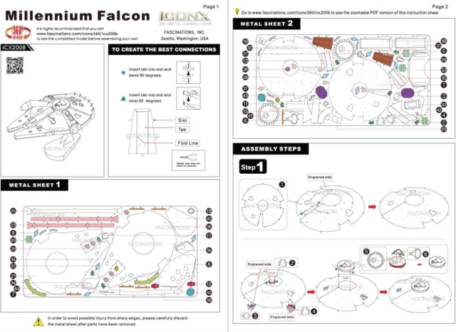 Jednotlivé diely vyberte z kovových plátkov, v prípade potreby použite malé štikacie nožnice (nie sú súčasťou). Dieliky sa spájajú pomocou zámkov tvorených úchytom (jazýčkom) a otvorom. Jazýček ohnite pomocou malých tenkých klieští (nie sú súčasťou) a postupne spojte všetky zámky, až vznikne veľmi realistický majstrovský kúsok!