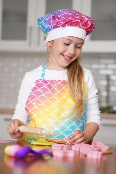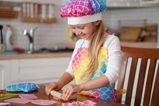 Hrať sa na šéfkuchára ešte nikdy nebolo zábavnejšie! Táto detská sada na pečenie obsahuje zásteru, kuchársku čiapku, chňapku a praktické náradie ako vykrajovačky, odmerky, valček, varešku i metličku – všetko v oslnivom dúhovom dizajne. Ideálna na prvé pečenie aj tvorivé hranie v kuchyni. Vek 3+.