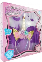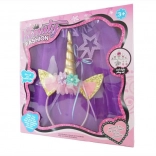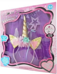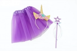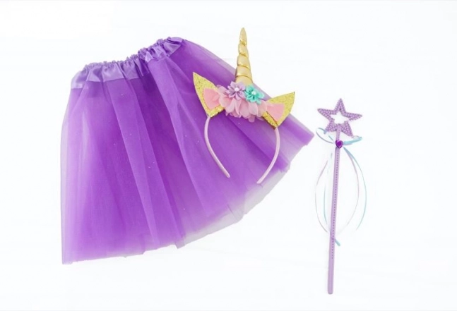 Roztomilá sada na prezliekanie poteší každú malú milovníčku jednorožcov. Nadýchaná tutu sukňa v jemnej fialovej, pohodlná čelenka s rohom zdobená kvietkami a trblietavými uškami a ľahká palička s hviezdičkou vytvorí behom chvíľky dokonalý rozprávkový outfit.
