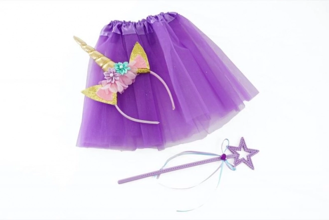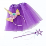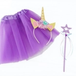 Roztočte fantáziu s čarovnou sadou jednorožec: obsahuje fialovú tutu sukňu, čelenku s trblietavým rohom a hviezdnu paličku. Ideálna na karneval, oslavy aj každodenné hranie, pre deti od 3 rokov.