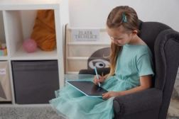 Tenká, odolná konštrukcia a stylus s ľahkým úchopom robia z tabletu ideálnu pomôcku do detskej izby aj na cestovanie.