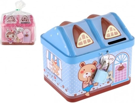 Táto plechová pokladnička v tvare domčeka je ideálna na prvé krôčiky k správnemu hospodáreniu s peniazmi. Vďaka uzamykaniu na kľúčik zostanú nasporené peniažky v bezpečí a otvor na hornej strane uľahčí pravidelné sporenie. Farebné ilustrácie a hravý dizajn motivujú deti k odkladaniu drobných mincí každý deň.