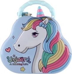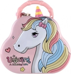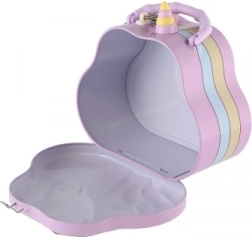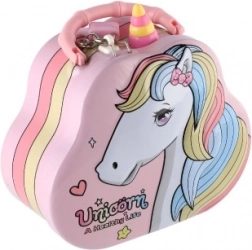 Hľadáte roztomilý a praktický darček pre deti? Plechová pokladnička – kabelka s jednorožcom je ideálnou voľbou. Deti si v nej bezpečne uložia svoje prvé úspory vďaka uzamykateľnému viečku, zatiaľ čo horná štrbina na vkladanie mincí uľahčuje každodenné šetrenie.
