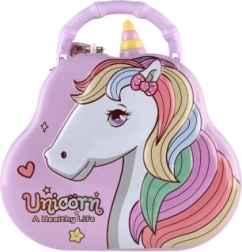 Pokladnička má kompaktné rozmery 15 × 14 cm, je ľahká, ale pevná a vďaka kovovej konštrukcii odolá detským dobrodružstvám. Pastelové farby a motív jednorožca podporujú detskú kreativitu a robia z pokladničky pôvabnú dekoráciu detskej izby.