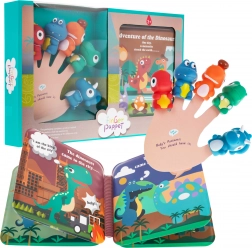 Táto kreatívna sada spája prstové maňušky s motívom dinosaurov a mäkkú knižku s jednoduchým anglickým textom. Deti si môžu ľahko nasadiť maňušky na prsty a zahrať vlastné divadielko, zatiaľ čo knižka s farebnými ilustráciami podnecuje zvedavosť a rozširuje slovnú zásobu. Vodeodolné prevedenie sa hodí na hranie v detskej izbe aj do kúpeľne.