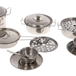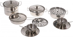 Hrniec, veľký hrniec, panvica aj pokrievky z kovu znejú a vyzerajú ako skutočné. Deti si tak trénujú zručnosti a učia sa bezpečným návykom pri „varení“. Ľahké čistenie a vysoká odolnosť zaistia dlhú zábavu.