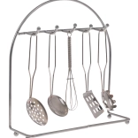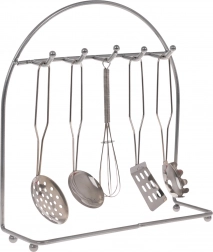 Praktický stojan udržiava metličku, naberačku, dierovanú lyžicu, obracačku a ďalšie náradie prehľadne zavesené. Deti sa ľahko naučia poriadok aj správne návyky v kuchyni.