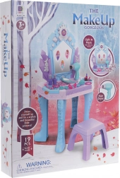 Súčasťou sady je stolička, šperky a kozmetické doplnky – všetko bezpečné a prispôsobené detským rúčkam. Praktické priehradky vpredu aj po stranách stolíka udržia všetky poklady na svojom mieste.