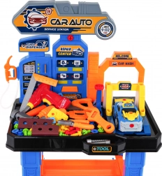 Interaktívny autoservis 4 v 1 pre deti 3+ so stolíkom, umývačkou, čerpacou stanicou, autíčkom a vŕtačkou