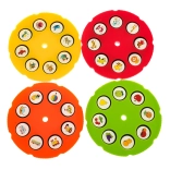 Štyri farebné kotúče ponúkajú 8 motívov každý – od zvierat cez ovocie po vozidlá. Deti sa učia tvary aj farby a zábavnou formou trénujú kreslenie.