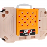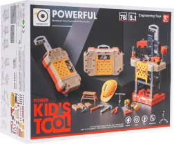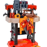 Táto všestranná sada pre malých majstrov si poradí s každým domácim „projektom“. Deti si môžu postaviť stabilný pracovný stolík a po skončení hry všetko jednoducho uložiť do praktického kufríka s rukoväťou alebo previezť v ťahacom kufríku na kolieskach. Realistická aku vŕtačka/skrutkovač na 2× AA batérie skrutkuje aj odskrutkováva a pri práci svieti červenou diódou – presne ako skutočný nástroj.
