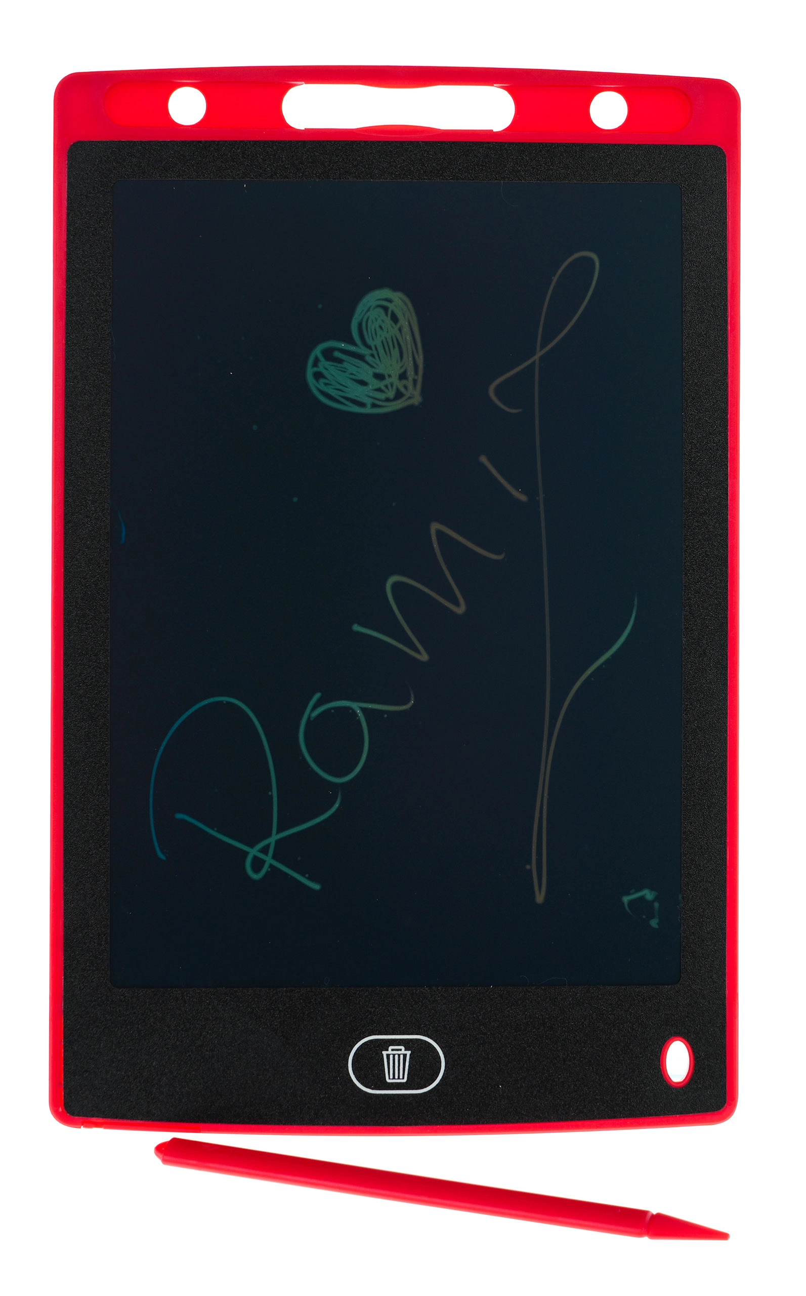 Tablet je ľahký, tenký a ľahko prenosný – do škôlky, školy aj do práce. Má držiak na rysku v hornej časti a otvor na zavesenie na šnúrku. Ak nemáte rysku poruke, môžete písať aj nechtom bez obáv z poškriabania.