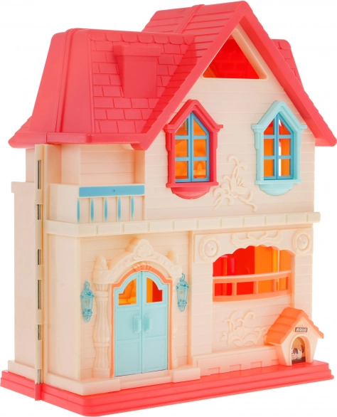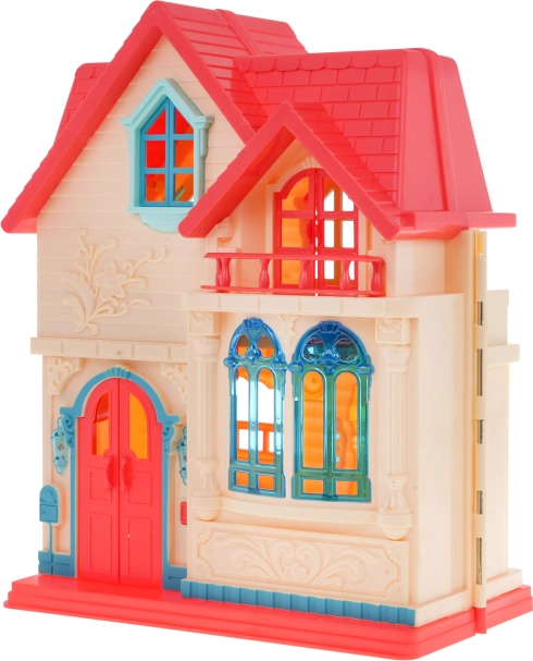 Táto farebná rozkladacia vila ponúka deťom od 3 rokov nekonečné možnosti hry. Po otvorení získate prístup do štyroch detailne vybavených izieb s nábytkom a doplnkami. Zvonček pri vstupných dverách po stlačení prehrá zvuk zvonenia a štekotu psíka a súčasne rozsvieti lampy pri dverách, v miestnosti navyše bliká stojacia lampa.