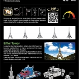 Tento úchvatný model Eiffelovej veže s rozmermi cca 15,3 x 5,1 x 5,1 cm je nielen skvelým doplnkom, ale aj pútavou výzvou pre nadšencov aj zberateľov. Odporúčaný vek pre skladanie modelu je od 14 rokov.