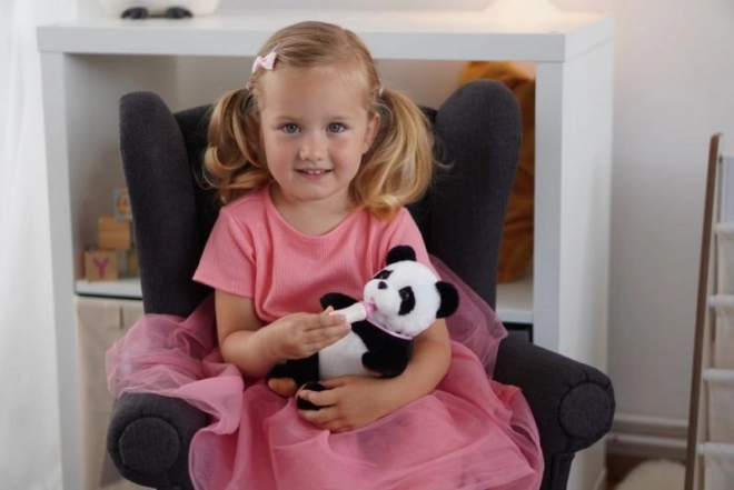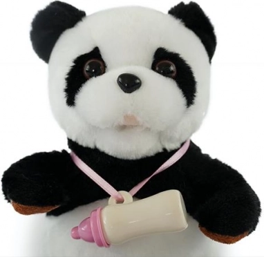 Roztomilá interaktívna plyšová panda poteší každé dieťa svojou mäkkosťou a zábavnými zvukmi. Stačí priložiť fľaštičku k pyskovi a ozve sa realistický zvuk pitia. Keď fľaštičku vyberiete, panda reaguje roztomilým zvukom, ktorý podporí fantáziu a opatrovateľskú hru.