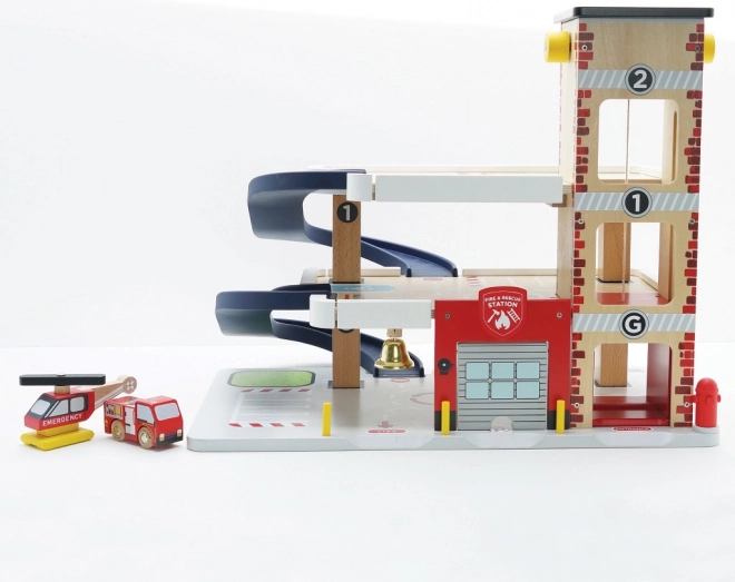 Tento obľúbený hrací set prináša všetko potrebné pre hodiny zábavy! Dizajn tejto drevorobnej stanice, inšpirovaný skutočnými záchrannými službami, poskytuje deťom nespočetné možnosti pre rozvoj ich fantázie.