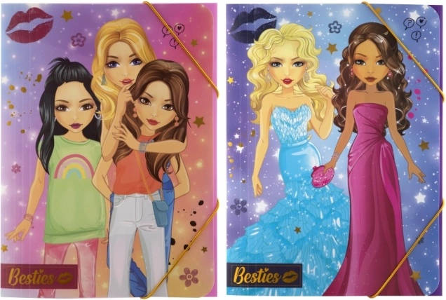 Tieto školské dosky A4 s preklápacou gumou a dizajnom Besties sú ideálne pre každého študenta, ktorý chce udržať svoje dokumenty a zošity organizované a bezpečné.