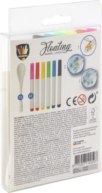 S touto sadou plávajúcich fixiek premeníte každodenné okamihy na neobyčajné zážitky. Obsahuje fixky vo ružovej, červenej, žltej, zelenej, modrej a čiernej farbe pre maximálnu kreativitu. Stačí nakresliť tvar na suchú lyžičku a po 30 sekundách ponoriť do vody - plávajúci obrázok začne okamžite plávať.