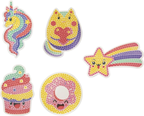 Táto kreatívna sada prepája obľúbenú techniku „diamond painting“ s praktickou dekoráciou do domácnosti. Postupne ukladáte drobné kamienky podľa predlohy a za chvíľku vzniknú žiarivé magnety s veselými motívmi, ktoré rozžiaria každé miesto, kde ich pripnete.