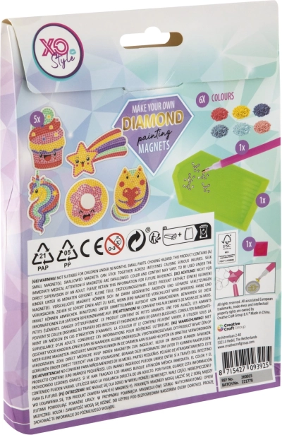 Objavte jednoduchú kreatívnu zábavu pre celú rodinu: sada na výrobu magnetov s diamantovými kamienkami prináša farebné motívy, ktoré si obľúbia deti aj dospelí. V balení nájdete 5 ks a vybrať si môžete z dvoch druhov motívov – roztomilé zvieratká a chutné dobroty. Skvelé ako dekorácia na chladničku či magnetickú tabuľu aj ako malý darček.