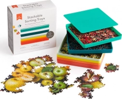Užite si skladanie puzzle s dokonale zorganizovaným pracovným priestorom. Šesť farebných misiek umožní rýchlo roztriediť dieliky, či už podľa tvaru, farby alebo okrajov. Misky možno ľahko stohovať, prikryť horným vekom a bezpečne uschovať aj s dielikmi, takže nič nevysypete a ušetríte miesto.