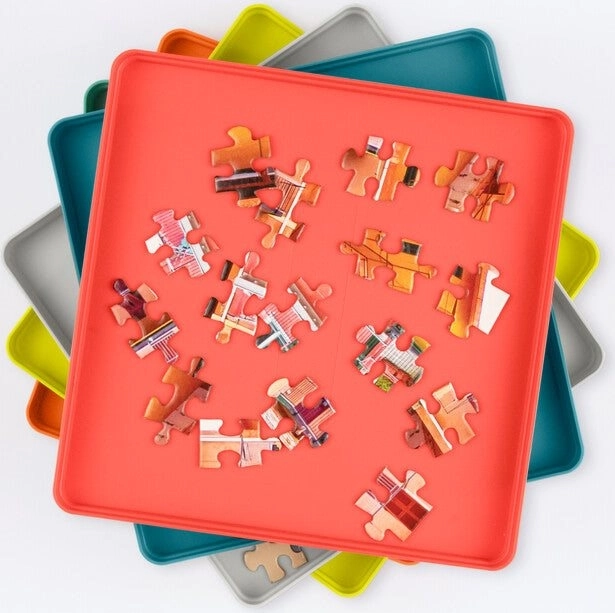Užite si skladanie puzzle s dokonale zorganizovaným pracovným priestorom. Šesť farebných misiek umožní rýchlo roztriediť dieliky, či už podľa tvaru, farby alebo okrajov. Misky možno ľahko stohovať, prikryť horným vekom a bezpečne uschovať aj s dielikmi, takže nič nevysypete a ušetríte miesto.