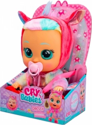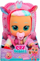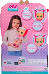Všetky bábiky Cry Babies sú teraz dostupné v novej verzii s našitými vlasmi, sklenenými očami a hladšou, vylepšenou tváričkou. Navyše sú ľahšie a nosia fantastické, rozkošné oblečenie! Samozrejme, rovnako ako všetky bábiky Cry Babies, aj ony bez cumlíka plačú skutočné slzy a vydávajú autentické zvuky plačúceho bábätka. Dajte jej cumlík a prestane plakať. Môžete ju tiež uložiť, aby sa upokojila. Sada obsahuje fantastický, elegantný outfit, pár topánok a zodpovedajúci cumlík. Vydávajú viac než 10 detských zvukov! Predávajú sa s odnímateľným oblečením, párom topánok a zodpovedajúcim cumlíkom.