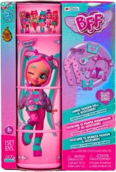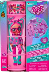 Bábika BFF Bruny prichádza v trendy outfite a s bohatou výbavou pre kreatívny styling. Vďaka dlhým, žiarivým vlasom a plne pohyblivým končatinám je skvelá na imaginatívnu hru, fotenie aj vystavovanie. Doplnky ako kabelka v tvare srdca, topánky, ponožky a náhrdelník doplnia každý look.