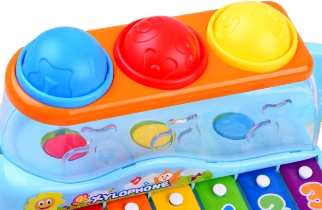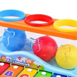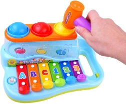 Deti môžu búšiť kladivkom do kláves alebo vkladať loptičky cez otvory, čím sa z hračky šíria ďalšie príjemné melódie. Klávesy sú označené číslami a písmenami, čo navyše pomáha deťom učiť sa a pamätať si postup úderov. Tento xylofón je dokonalý spôsob, ako podporovať zvedavosť a záujem o svet u malých detí.