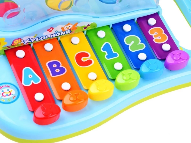 Xylofón obsahuje klávesy označené písmenami a číslami, ktoré podporujú rané učenie detí.