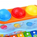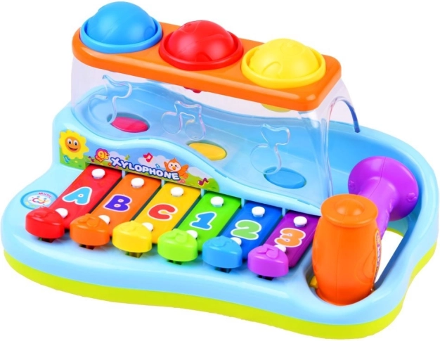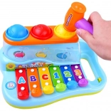 Dodáva sa s kladivkom a tromi loptičkami, ktoré môžu deti zasiahnuť, čo vytvára rôzne zvukové efekty a podporuje hudobnú kreativitu.