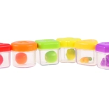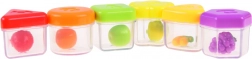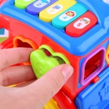 Obsahuje sadu farebných kociek rôznych tvarov s odpovedajúcimi otvormi pre rozvoj logiky a jemnej motoriky.