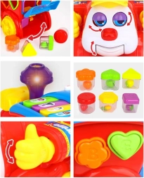 Lokomotíva je navyše vybavená edukatívnym režimom, ktorý prostredníctvom tlačidiel ABC a kláves pianka deti oboznamuje s zvieratami, farbami, číslami a hudobnými notami. Tažko- otrasné konce hračky zabezpečujú bezpečné a ľahké skladovanie farebných kociek vo vnútri vlaku.