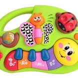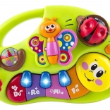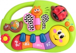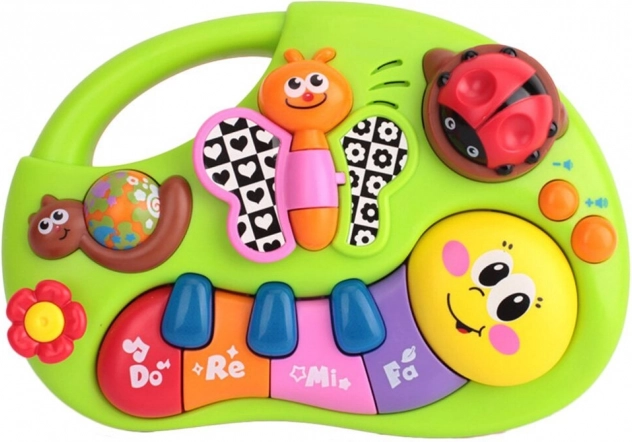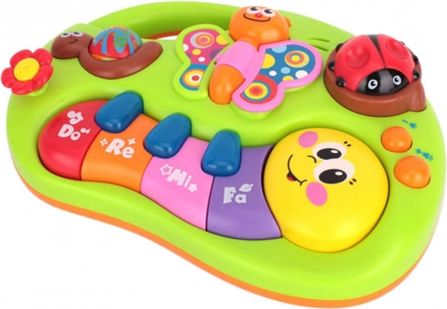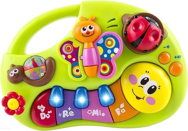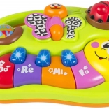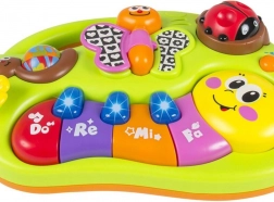 Interaktívny klavír pre deti, ktorý svojimi živými farbami stimuluje detský zrak a podporuje hravú aktivitu. Hravé melódie prebúdzajú záujem o hudbu a učia rozlišovať rôzne tóny a zvuky od ranného veku. Zvukové a svetelné efekty prinášajú deťom zábavu a potešenie.