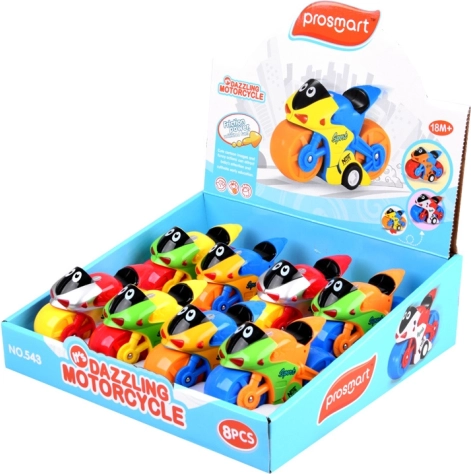 Výrazné farby a bezpečná konštrukcia motorky zaisťujú, že je hračka nielen vizuálne atraktívna, ale aj bezpečná pre deti. Rozmery produktu sú 11 cm x 7 cm x 4 cm. Každá motorka je zasielaná náhodne v jednej z dostupných farebných variant.