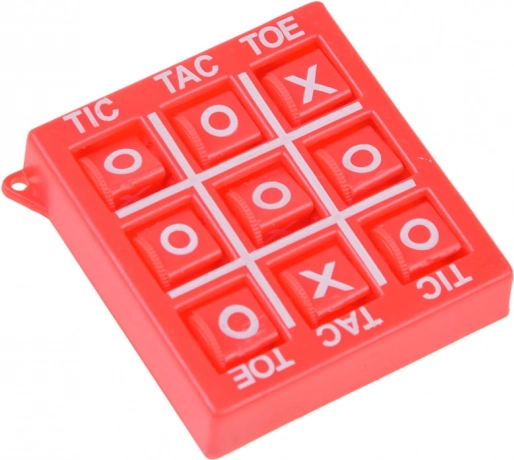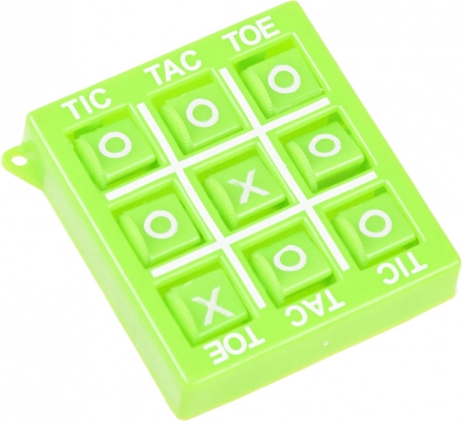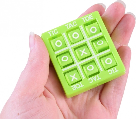 Hra obsahuje pohyblivé kocky s kreslenými znakmi krížikov a krúžkov. Stačí posunúť na správny znak a môžete začať hrať. Hra je kompletne vyrobená z plastu a vďaka svojim rozmerom (5 x 4,5 x 1 cm) sa ľahko zmestí do vrecka. Farba hry je vyberaná náhodne.