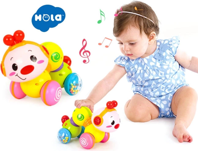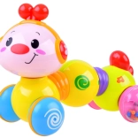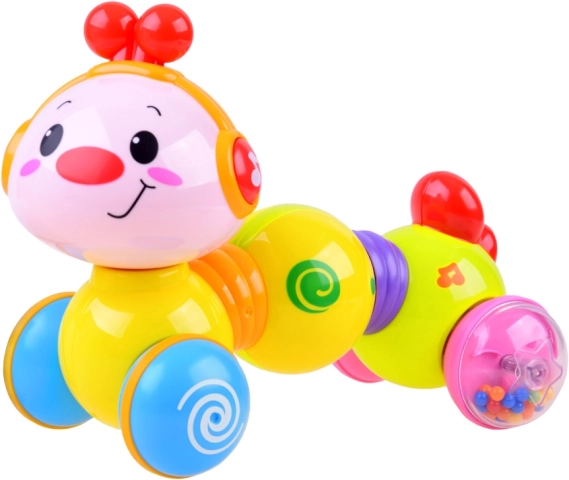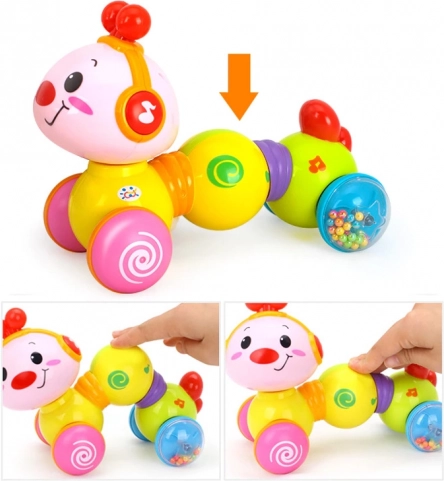 Veselá interaktívna húsenica na kolieskach, ktorá sa po stlačení rozbehne, svieti a prehráva melódie. Podporuje lezenie, rozvoj motoriky a učenie príčiny a následku už od 6 mesiacov.