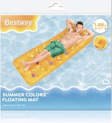 Nafukovacia matrac BESTWAY je ideálny parťák na každé letné dobrodružstvo. Integrovaný vankúš poskytuje príjemnú oporu hlavy, zatiaľ čo pevná vinylová stena zabezpečuje spoľahlivú výdrž a stabilitu na vode. Veselý farebný dizajn zaujme na prvý pohľad a dodá vášmu kúpaníu štýl.