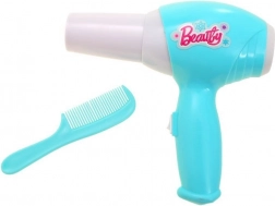 Súčasťou je detský fén na batérie, hrebeň, šperky a imitácie kozmetiky – všetko pre realistickú a kreatívnu hru.